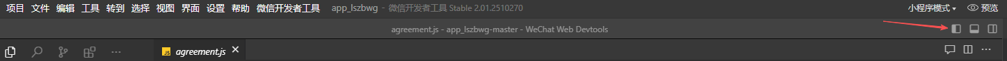 方式一:点击编辑器右上角左侧第一个按钮(Toggle Primary Side Bar),进行资源管理器显示隐藏切换