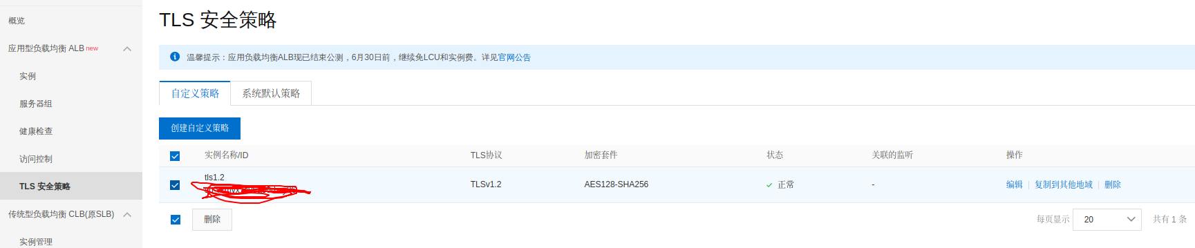 我们使用了阿里云的负载均衡SLB和它的 http 转 https 功能,它默认的 TLS 版本比较低,而 iOS要求 1.2, 如下图,去TLS安全策略那里添加一个自定义策略,选择一个支持 TLS1.2的算法,提交之后就好了。如果是小程序,请记着清缓存后再试,以免缓存的错误结果误导你的判断。