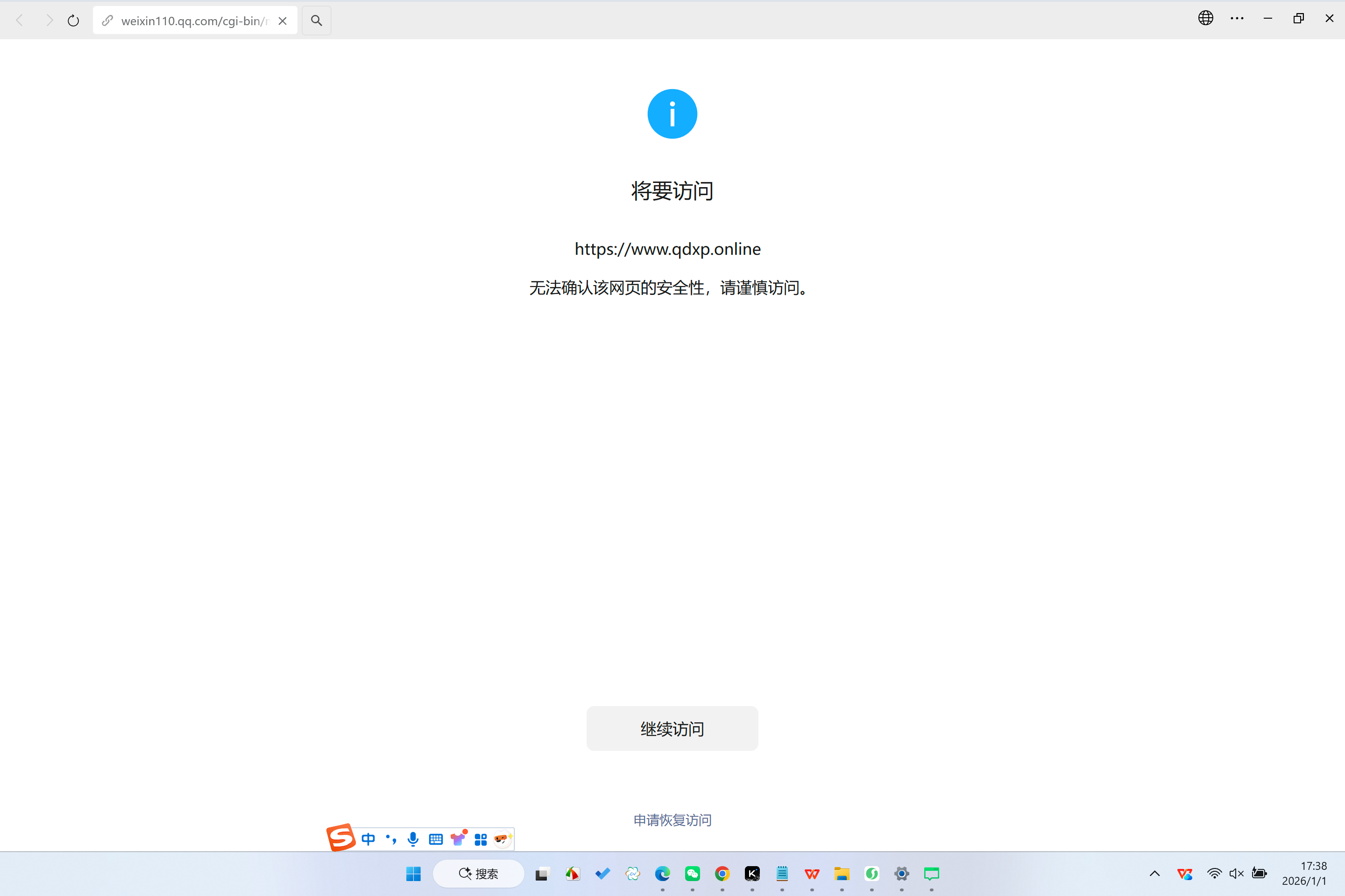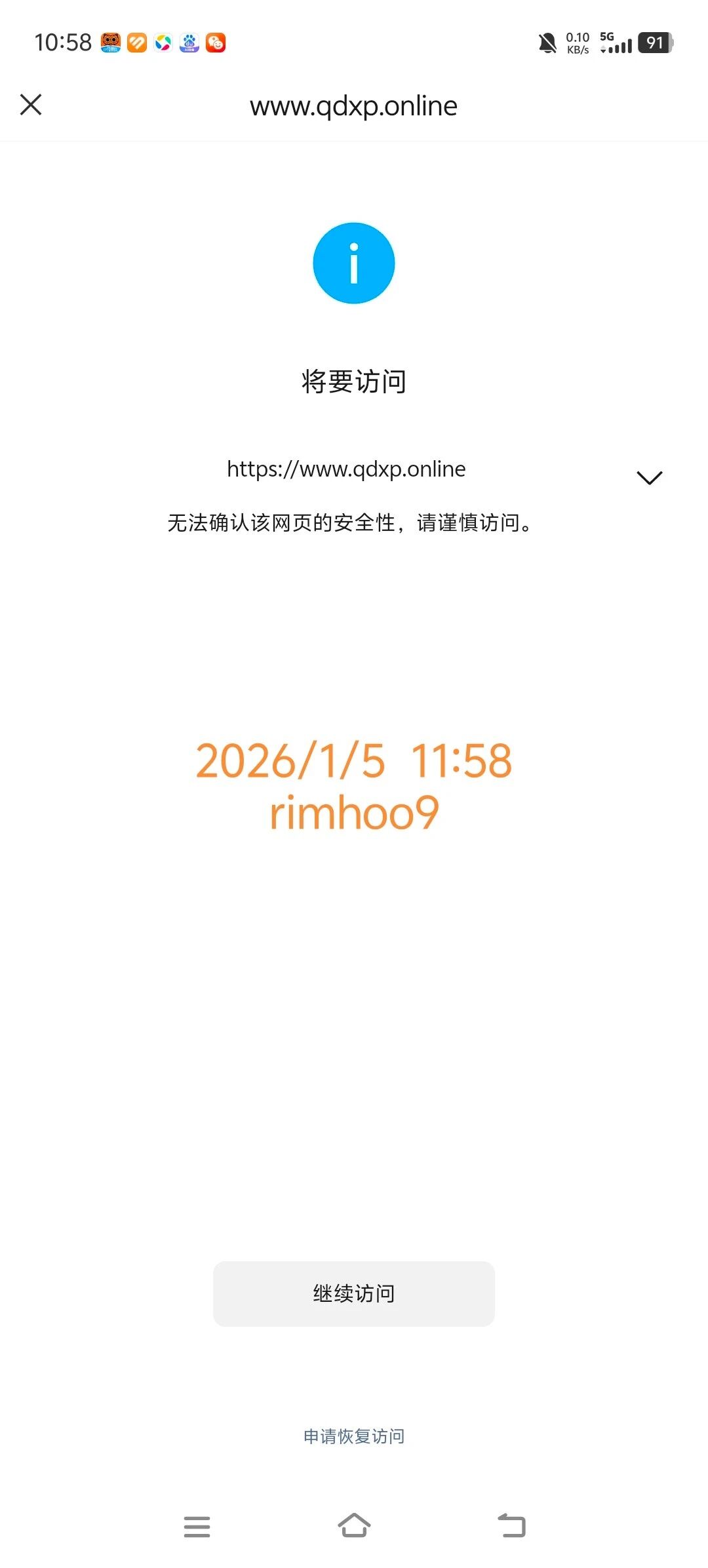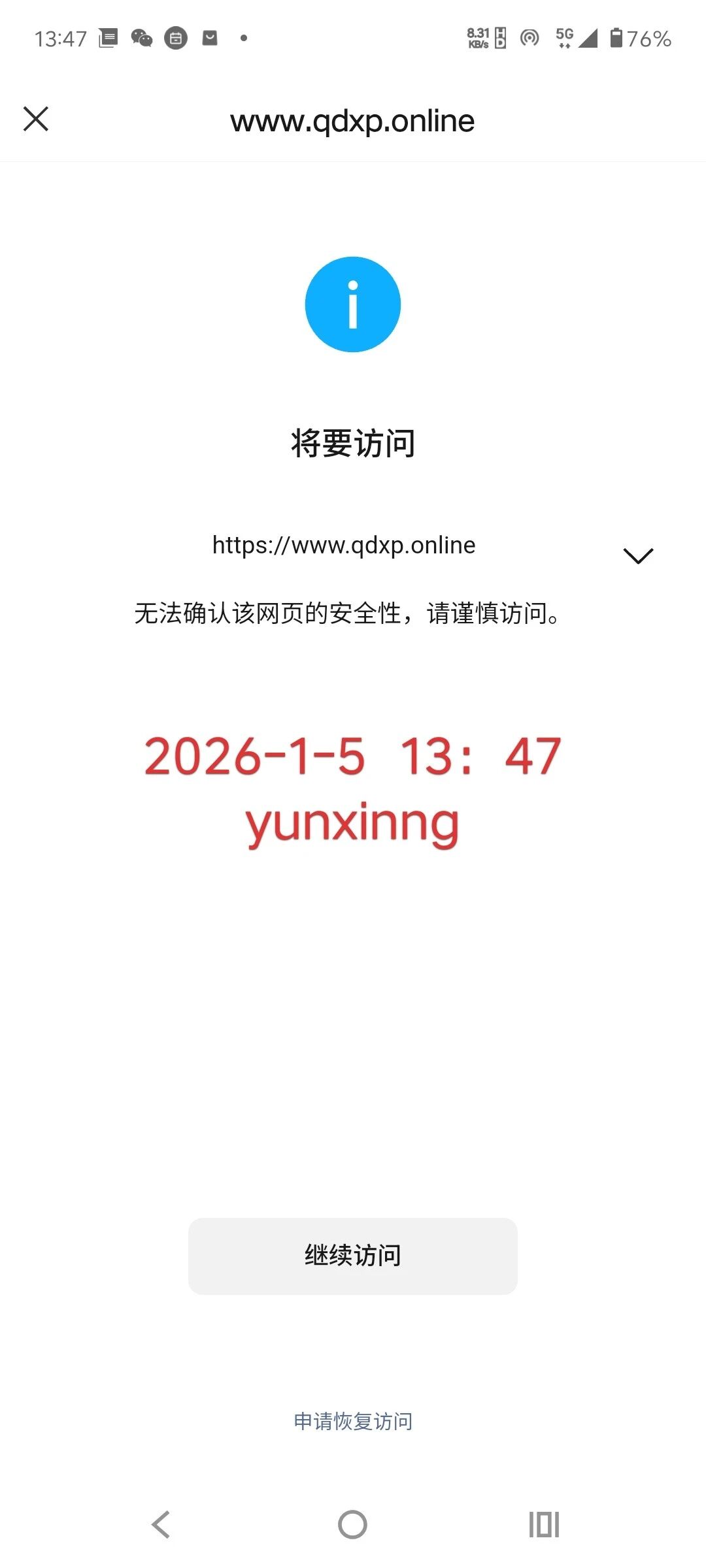 微信号:Staoory于2026/1/5 11:55访问https://www.qdxp.online灰色页面提示:"无法确认该网页的安全性,请谨慎访问。"