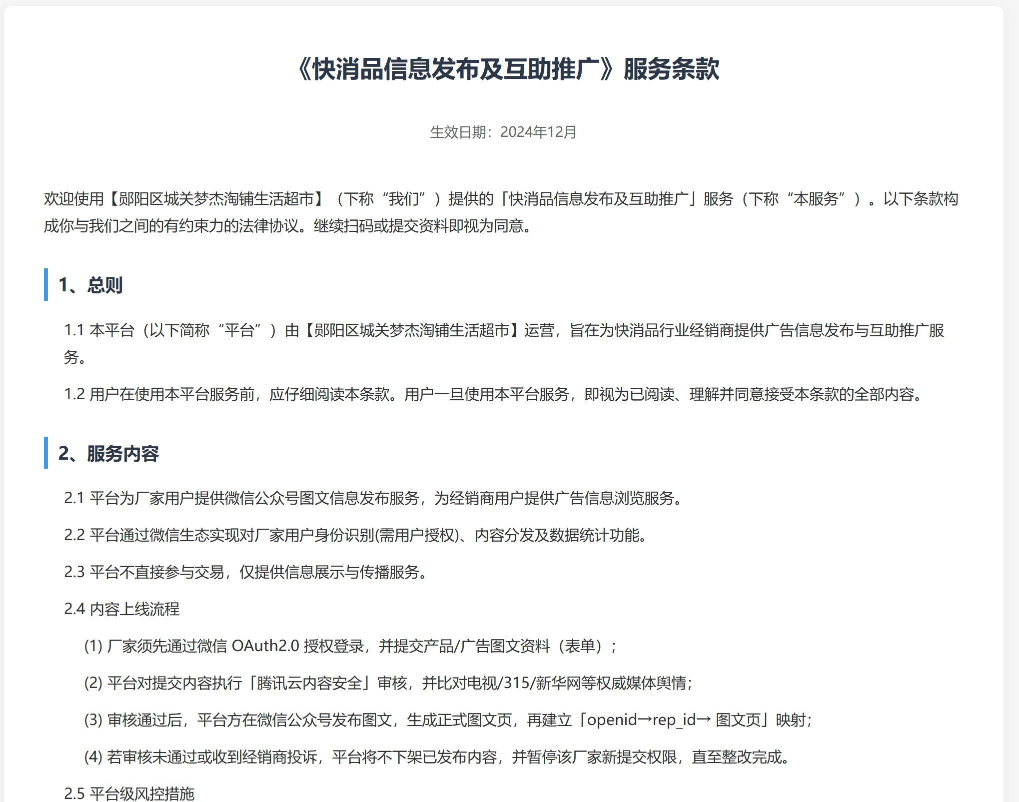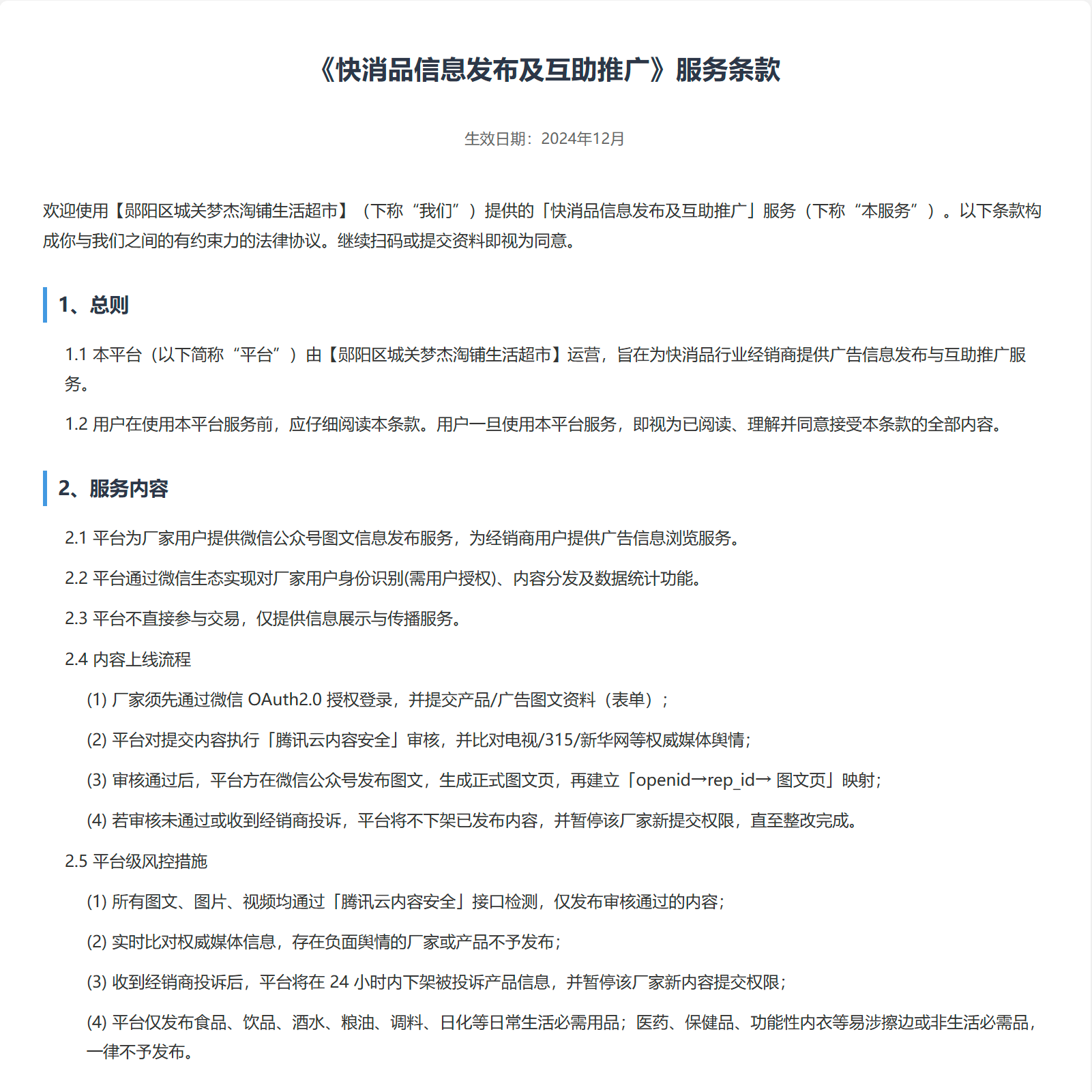 本企业"郧阳区城关镇梦杰淘铺生活超市"在腾讯云部署的微信公众号网站域名www.qdxp.online被"无法确认该网页的安全性,请谨慎访问。",现网站已开发完成并腾讯云安全规则及《微信外部链接内容管理规范》要求部署,特申请恢复正常访问,请审核通过,相关部署自检细则如下: