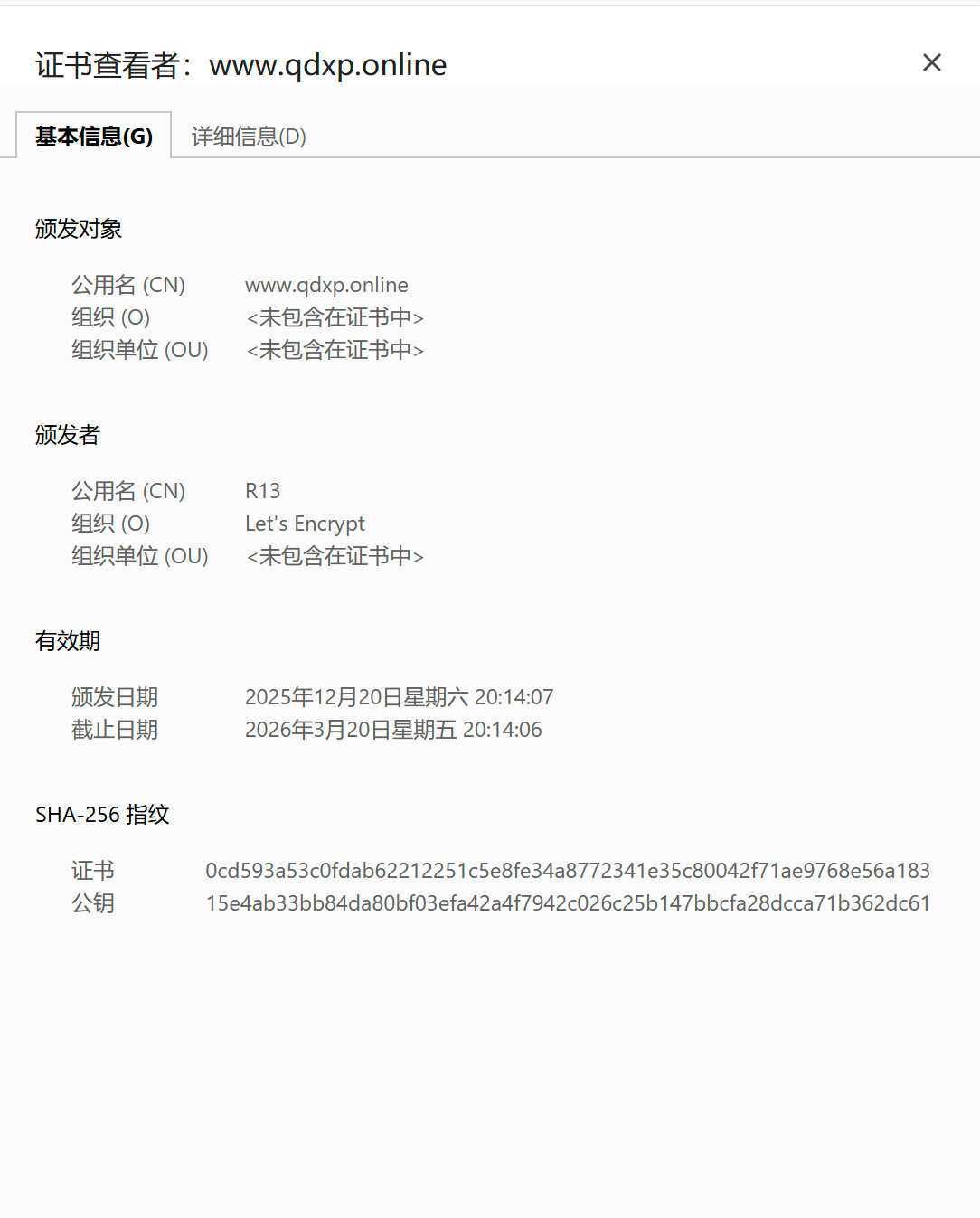 7.且证书链完整、未过期,SSL证书为宝塔Let's Encrypt免费证书,有效期3个月,默认会自动续签