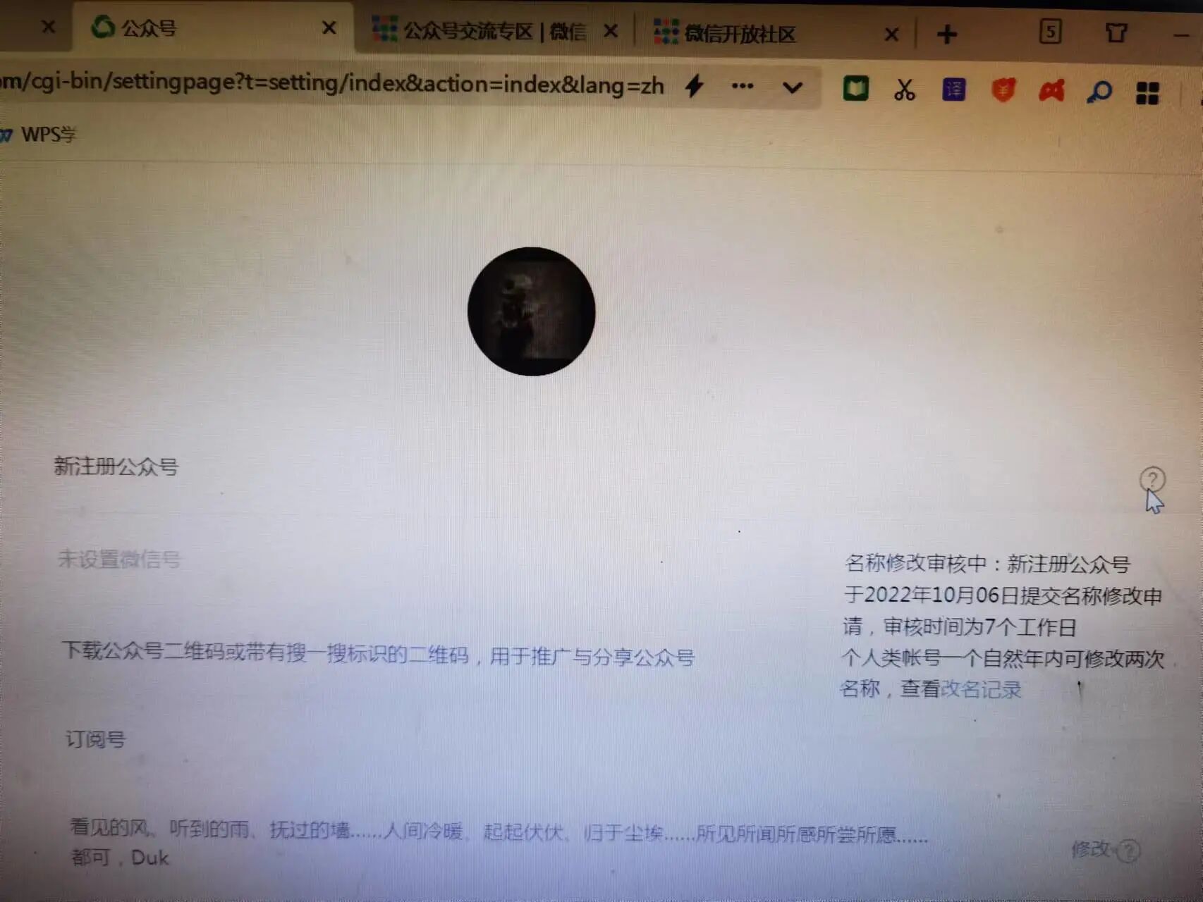 2022年10月6日新申请的公众号名字是“新注册公众号”,我想修改名称可是修改不了。如图显示,说在审核。