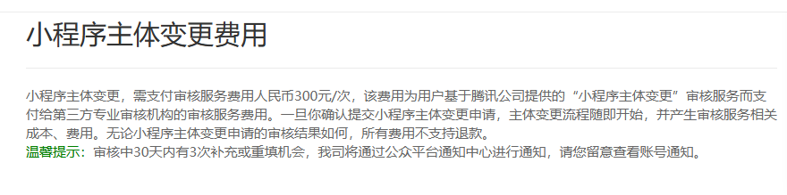 我的小程序要个体转公司,申请主题变更,提交资料、填资料、缴300审核费,资料审查和电话确认,通过之后,竟然还要确认,没确认就算失败,费用不退。我都认真填资料上传材料,缴费了,还需要最后确认一下吗? 这一步纯属多余吗! 有克扣认证费的嫌疑!