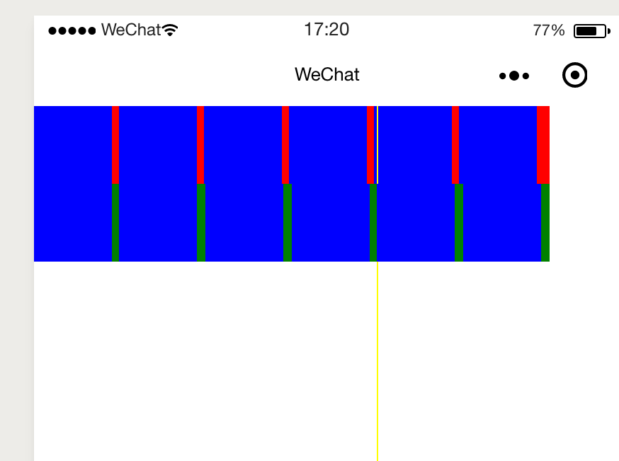 如图所示,第一行方块为flex布局,第二行方块为absolute布局,方块宽度100,间距10,容器宽度都是660,使用rpx为布局单位的时候,两行的方块位置慢慢出现差异,黄线为一个参考线。单位全改成px,两行方块是完全对齐的。无论模拟器还是真机,iphone6P和iphone7P均有问题,安卓未测试
