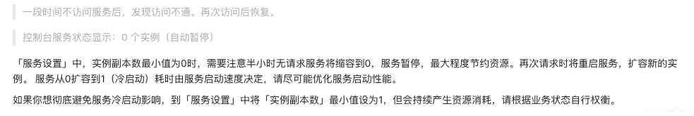 不设置最小实例时,可以在CallContainer方法捕获的异常中返回提示。