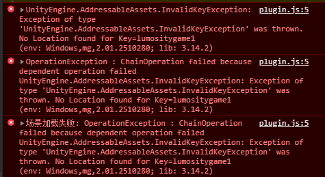 微信游戏使用 aa包打包场景,使用资源名(类型string name)加载后报错,也尝试使用assetreference加载,也同样报错。已设置合法域名。lumositygame1是我设置的资源名,与资源名一致,一开始是第一个图这个错误,清楚缓存和重新编译一下,发现偶尔能够加载成功。