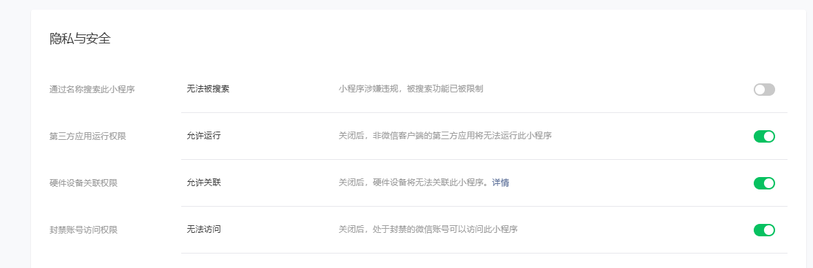 你好,经核实,小程序为正常使用状态,如对平台处理存在异议可发起线上申诉,或者通过站内信咨询客服,感谢反馈。