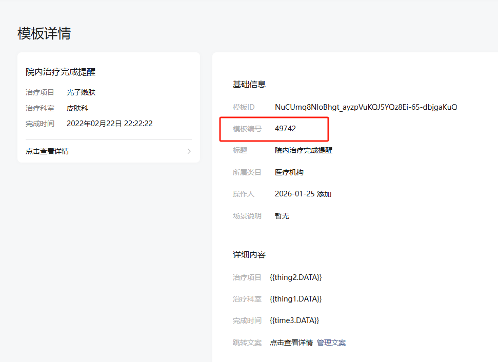 这是我通过官方的接口地址获取到的模板列表,没有模板编号。