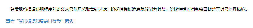 目前模板消息处罚采用的是阶梯制,根据违规行为程度,加重处罚能力的限制时长,如第一次警告,第二次3天;