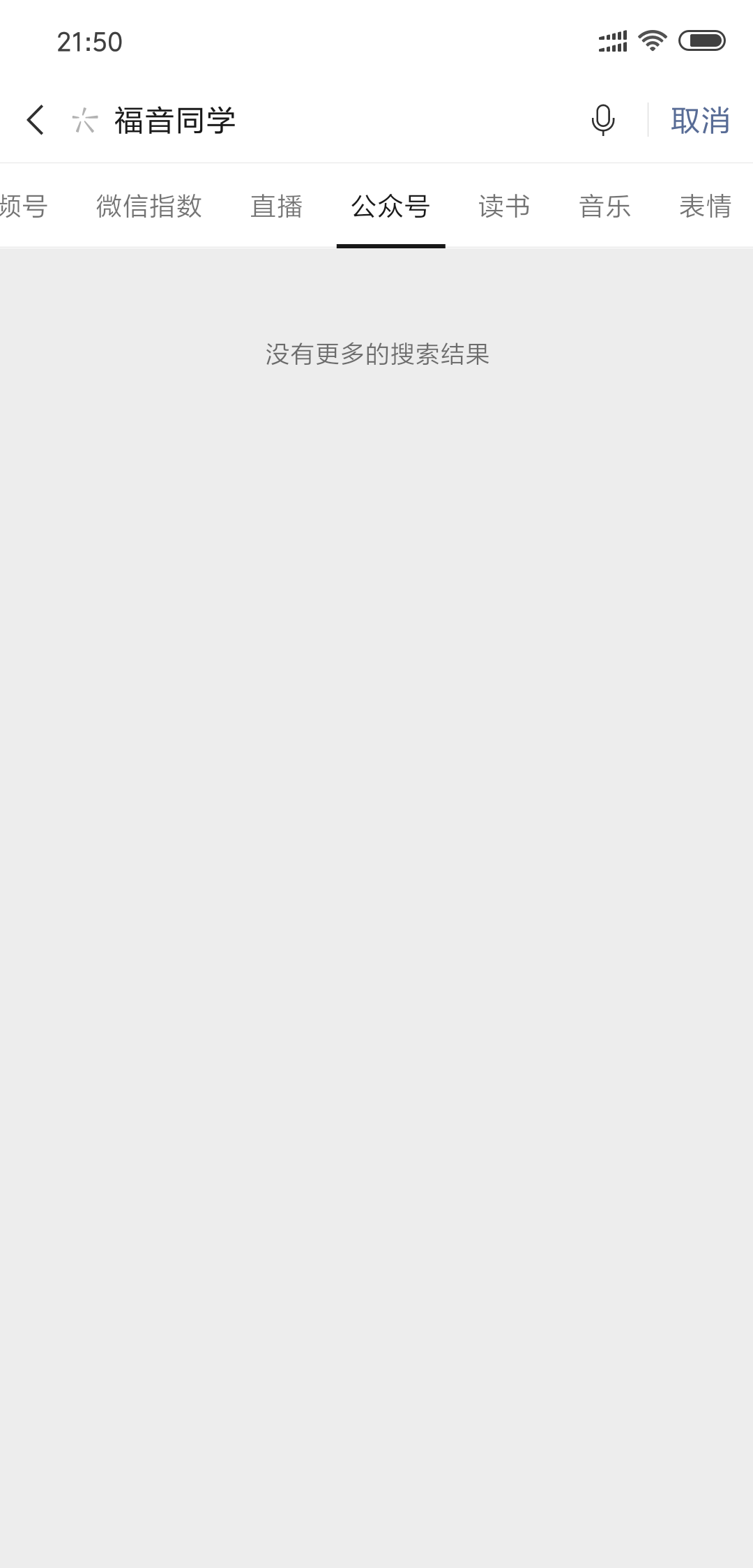 微信APP上搜索:福音同学,搜索不到我的公众号?