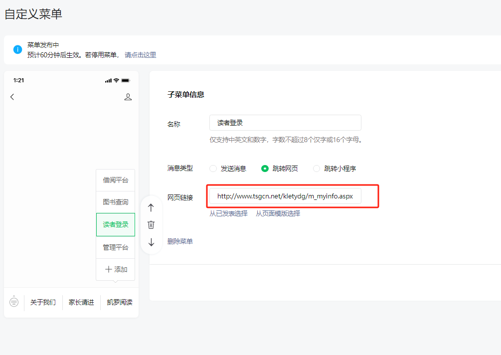 上面读者登陆的跳转链接为:http://www.tsgcn.net/kletydg/m_myinfo.aspx