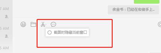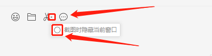 鼠标左键单击剪刀右边的那个▼(倒三角)就会在下方显示“○截图时隐藏当前窗口” 然后点击取消就完美解决了。