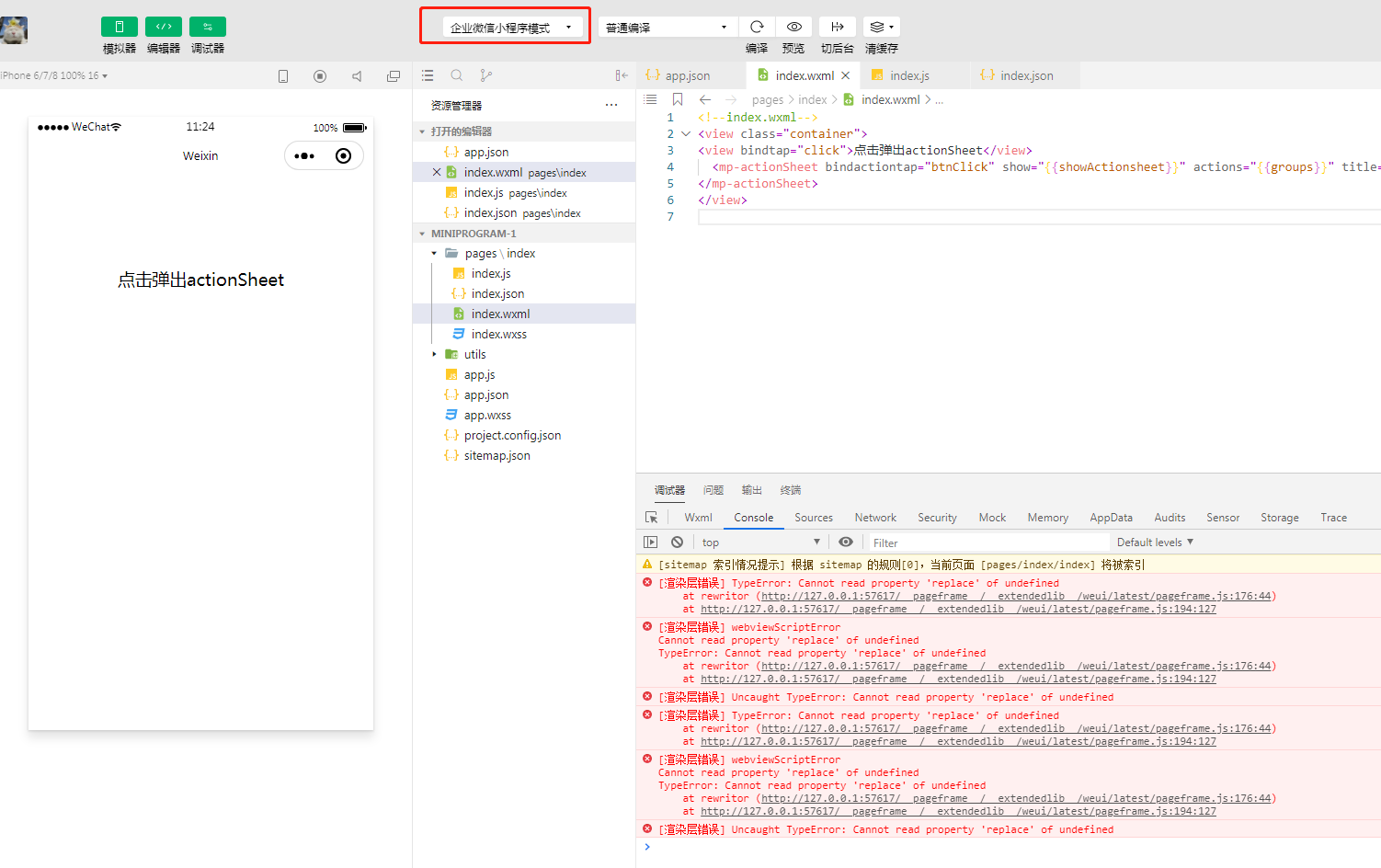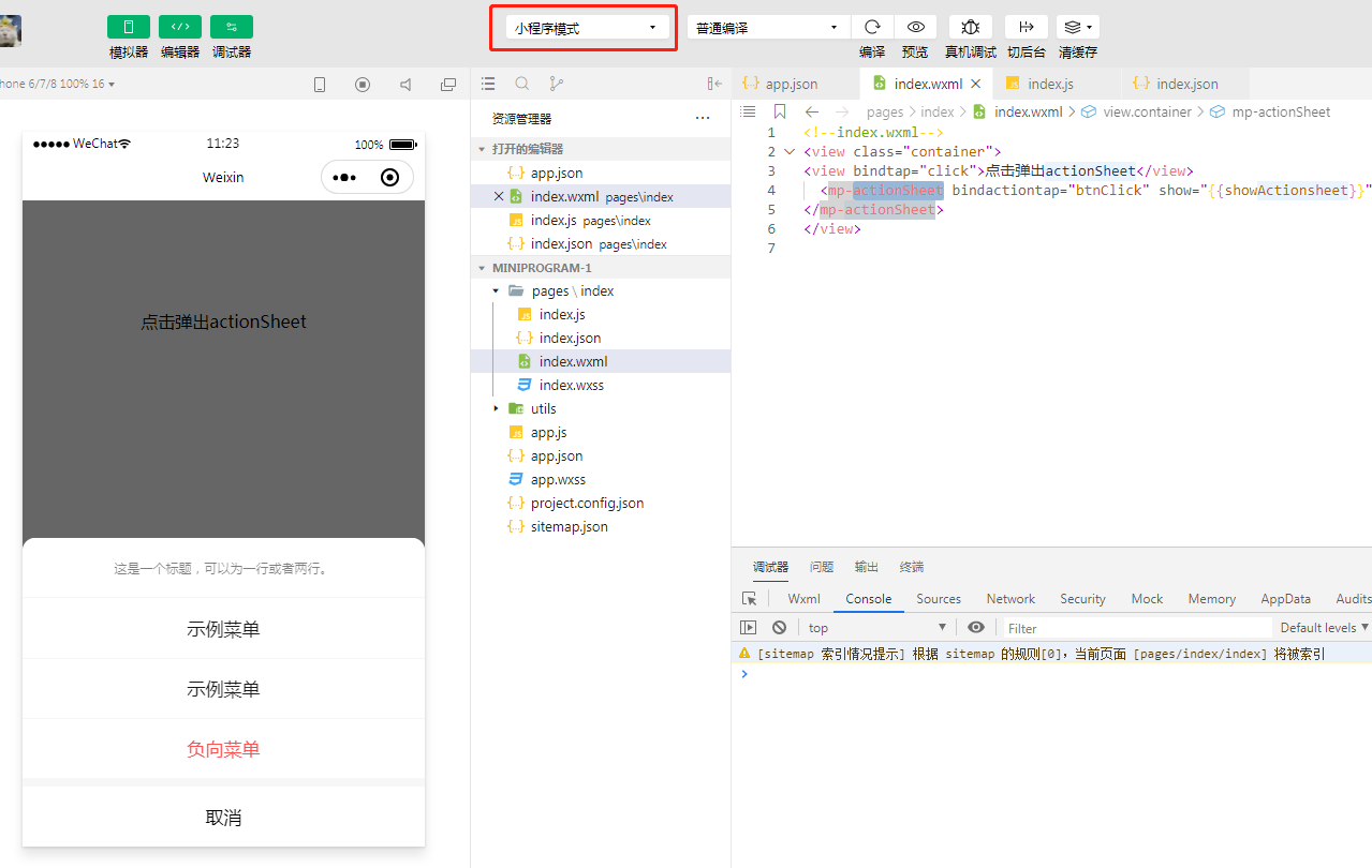 以actionSheet为例 小程序模式正常运行