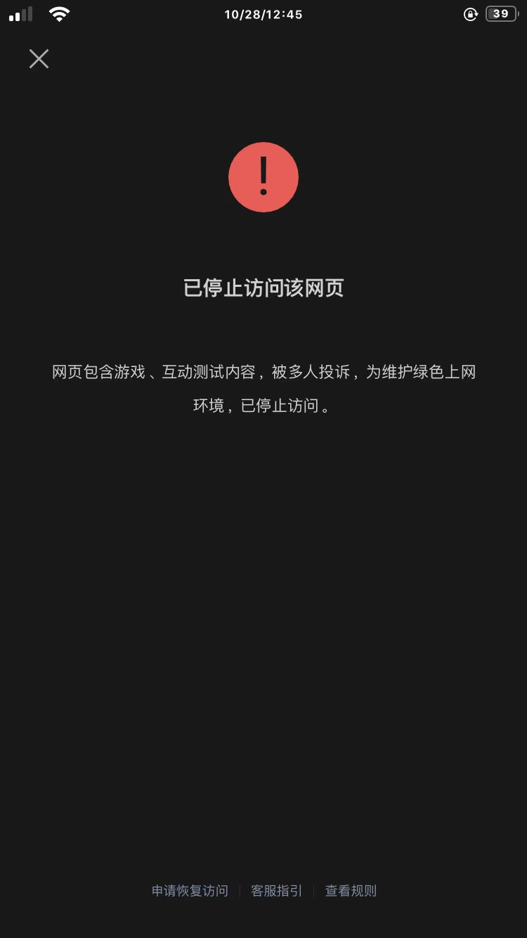 你好,经审核,域名aichig.com下的链接:【http://acg.aichig.com/app/index.php?i=1&c=entry&do=index&m=vp_ph/app/index.php?i=1&c=entry&fuid=309MjEyOQ&do=index&m=vp_ph】的内容严重违反《微信外部链接内容管理规范》的第19条“恶意对抗类内容”,不予恢复微信内直接访问的服务,请知悉。