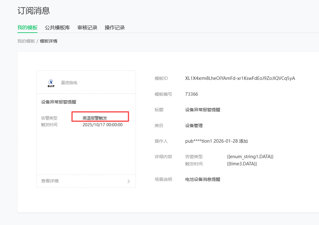 内容无法自定义,只能写高温报警触发六个字,如果是枚举值那么其他枚举值是多少,文档中并没有写
