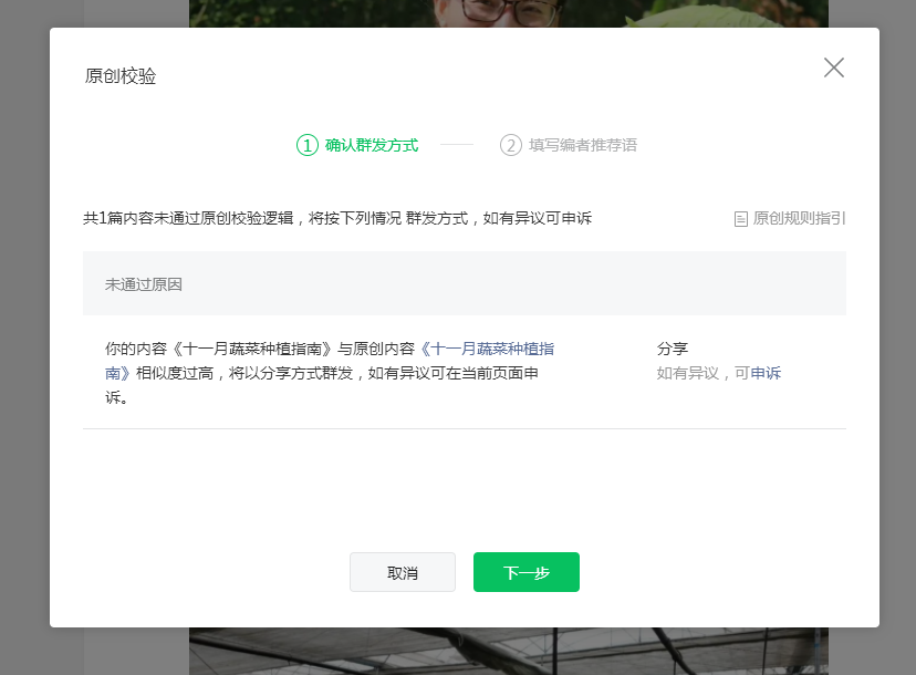 Q:抄袭申诉成功,文章已经恢复了,为何还不能群发?