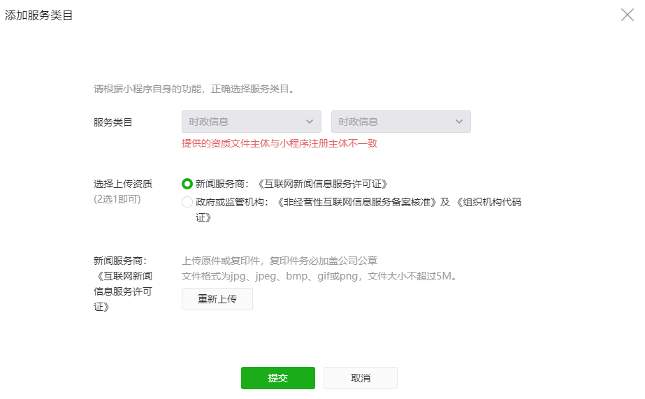 图1:添加时政信息类目被驳回