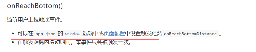 业务需求:为了实现用力上拉显示商品详情的效果 做法:把某一个页面的onReachBottomDistance设置为负数(-80),在IOS系统中,可以实现效果。在安卓手机和开发工具中,onReachBottomDistance设置为负数不能触发onReachBottom