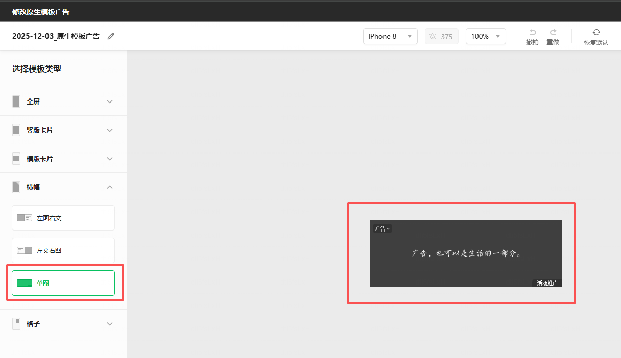 创建原生模板广告,自己设置单图广告就行
