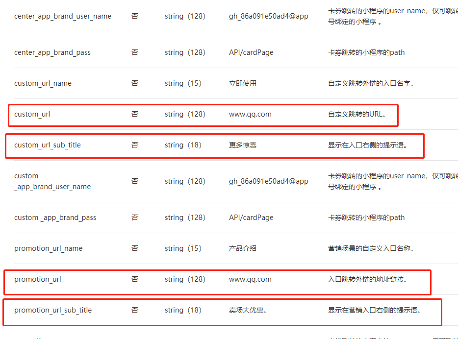 但直到2020年03月09日,微信公众平台,卡券开发文档,创建卡券时依然保留着 跳转网页配置的 参数,更新日志也停留在2017年了。
