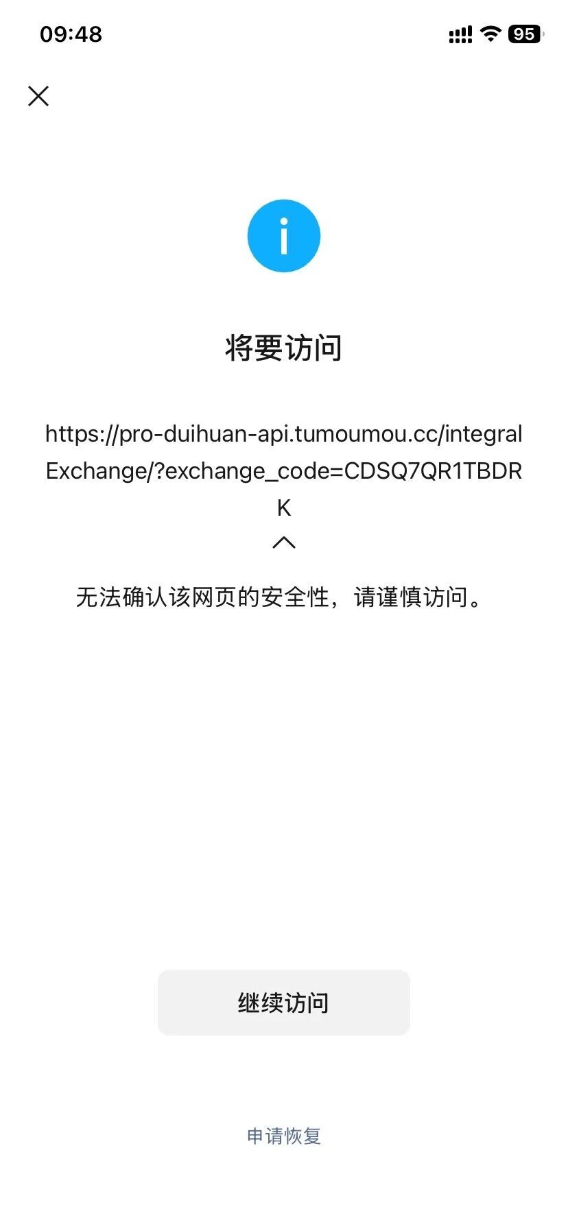 你好,经审核,域名【tumoumou.cc】下的链接【https://pro-duihuan-api.tumoumou.cc/integralExchange/?exchange_code=KBGPK4FLJLVPC】的内容存在违反《微信外部链接内容管理规范》的第19条“对抗类内容”,暂无法恢复微信内直接访问的服务。