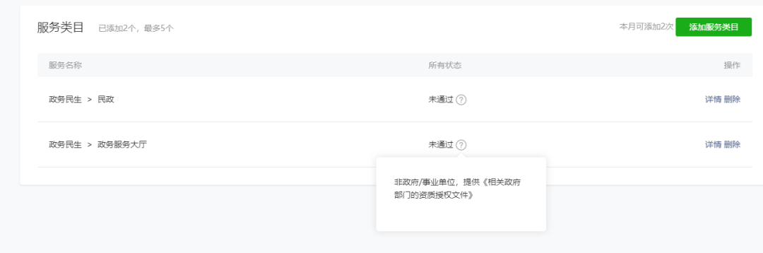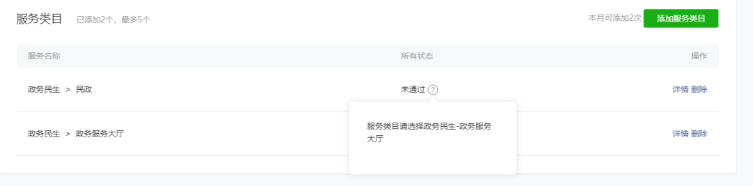 这实在审核时候提示:添加政务民生-政务服务大厅