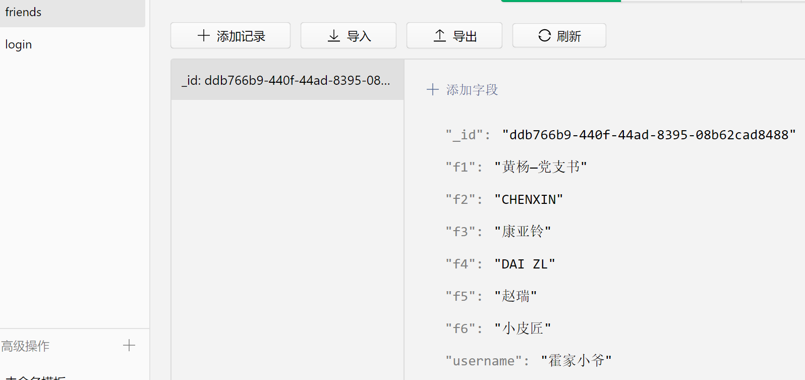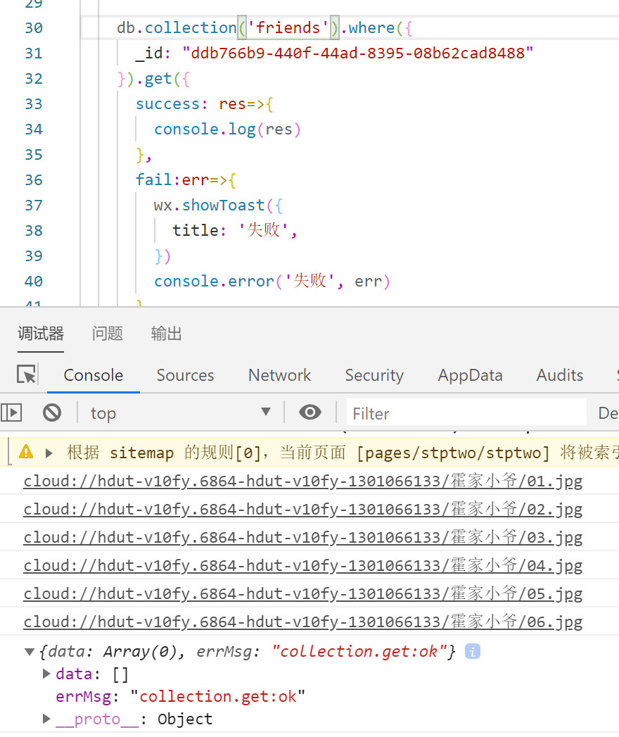 我在云端数据库手动添加了一条数据。如下图(点击”添加记录“添加)。然后小程序中写代码查询该条数据,为什么返回值为空呢(不报错,就是说数据为空)?我发现如果我用小程序add方法添加就可以查找到。这是为什么呢?等我把程序发布出去以后,我要对数据库添加新的内容不能手动添加吗?