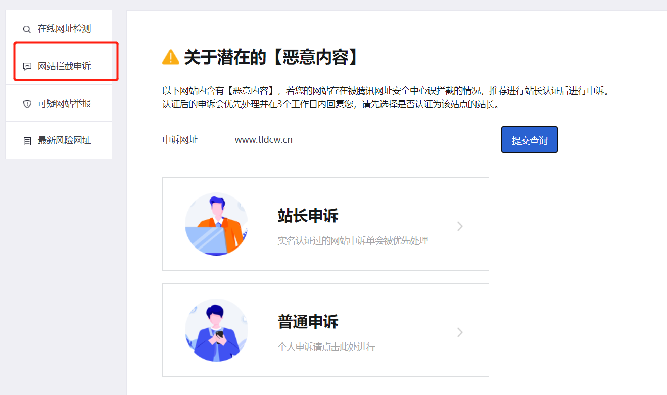 你好,经核实域名被手机管家拦截,此处仅处理被微信暂停提供微信内直接访问的服务的外部链接的申诉问题,此服务不在受理范围,请登录手机管家官网【http://gj.qq.com/online_server/complain_url.html】自行申诉,知悉。