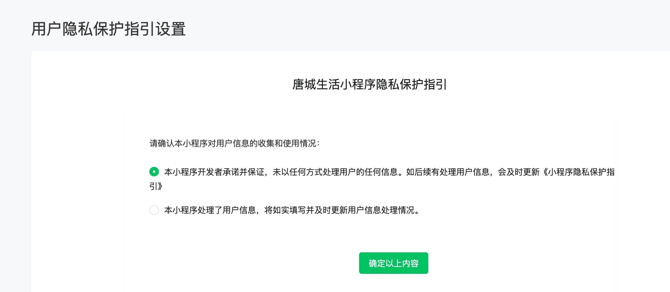设置页面这里的【用户隐私保护指引】更新的是现网版本,若你的小程序还未发布过,即你小程序目前还没有现网版本【用户隐私保护指引】,更新不会生效的。建议将小程序发布上线后,尽快完善【用户隐私保护指引】。
