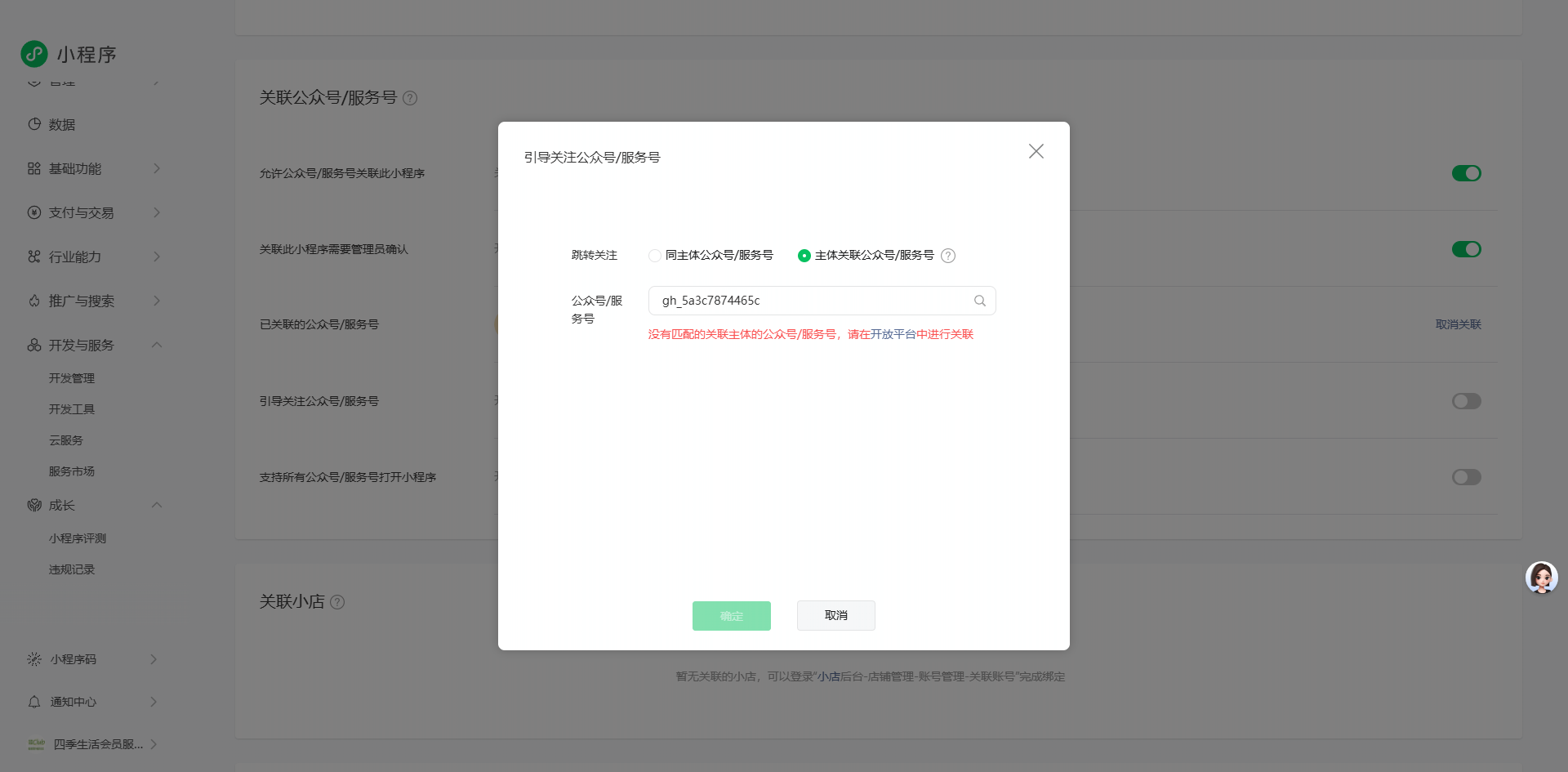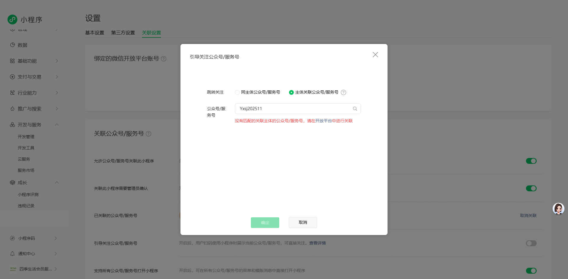 1、小程序引导关注公众号/服务号,两个主体不是同一个公司