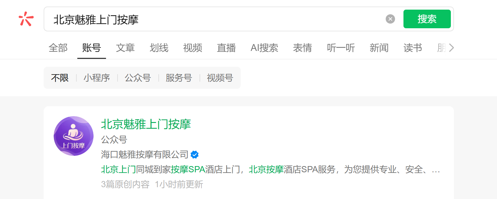 gh_64f90e56c365为什么搜索公众号公司名称都搜索不到? 这个是怎么回事的啊