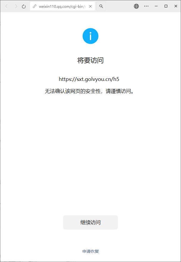 微信内访问网站出现“无法确认该网页的安全性,请谨慎访问”的拦截提示,网站符合《微信外部链接内容管理规范》,腾讯安全网址安全中心检测网页没有不安全的内容,请求核实后解除在微信内的访问拦截提示,谢谢