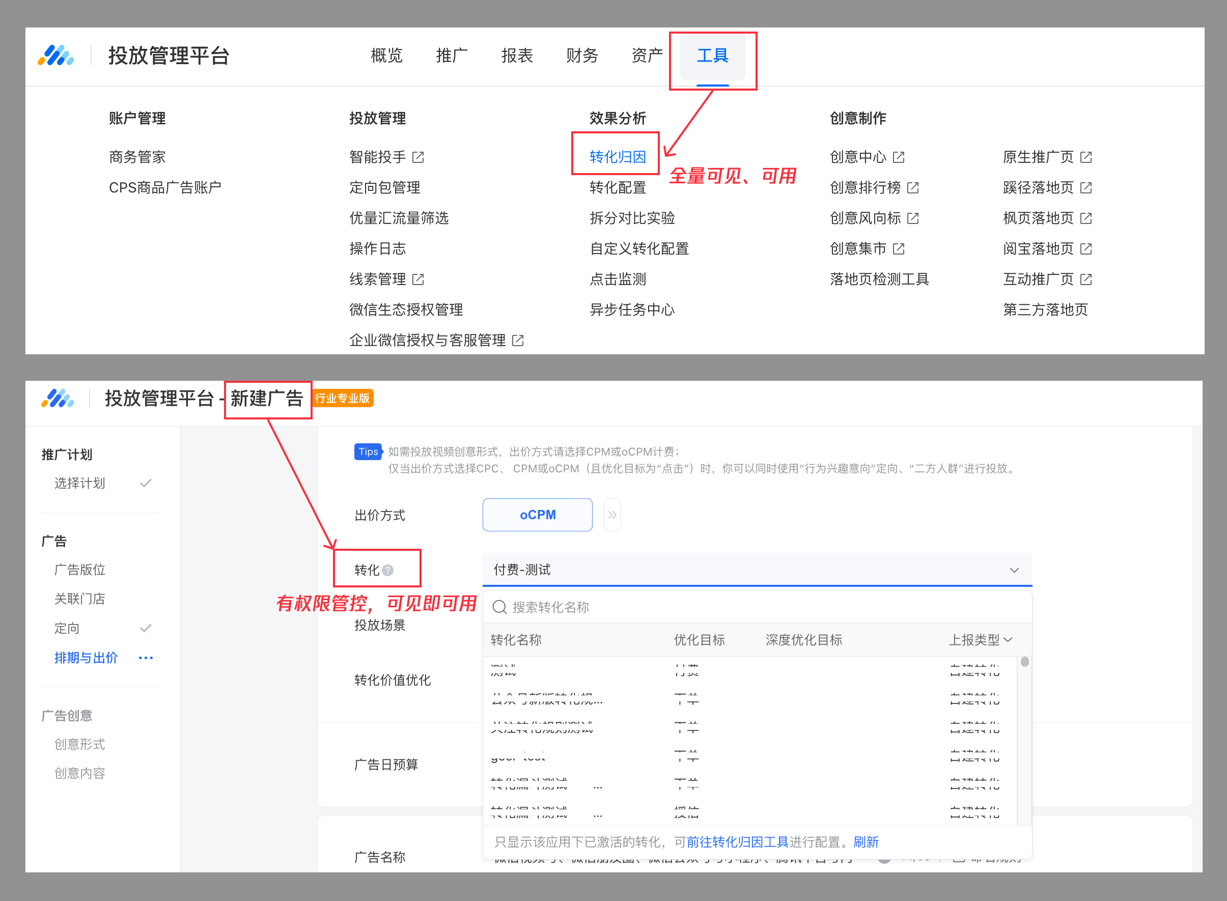 如题我在投放广告时无法选择自建的转化目标,请问需要如何开通权限,小游戏id:wx1114da917aa20400