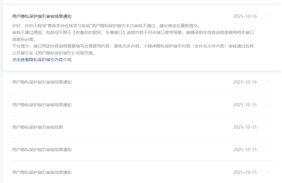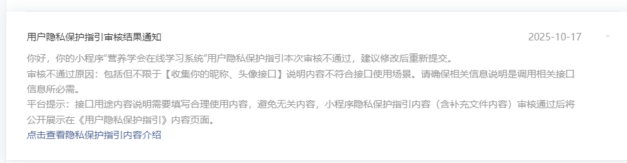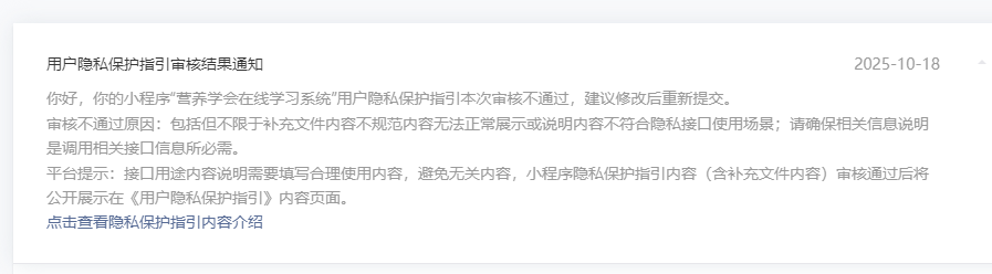 用户隐私保护指引 审核失败