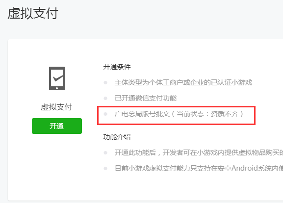 请问下,目前游戏还未提交过版本,申请虚拟支付,并通知我们已经通过审核,如图