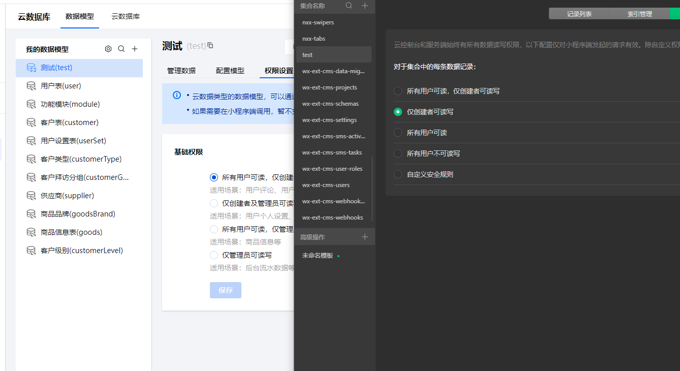 再控制台修改了数据库权限为 所有用户可读,结果数据库里面还是创建者可读写。。。