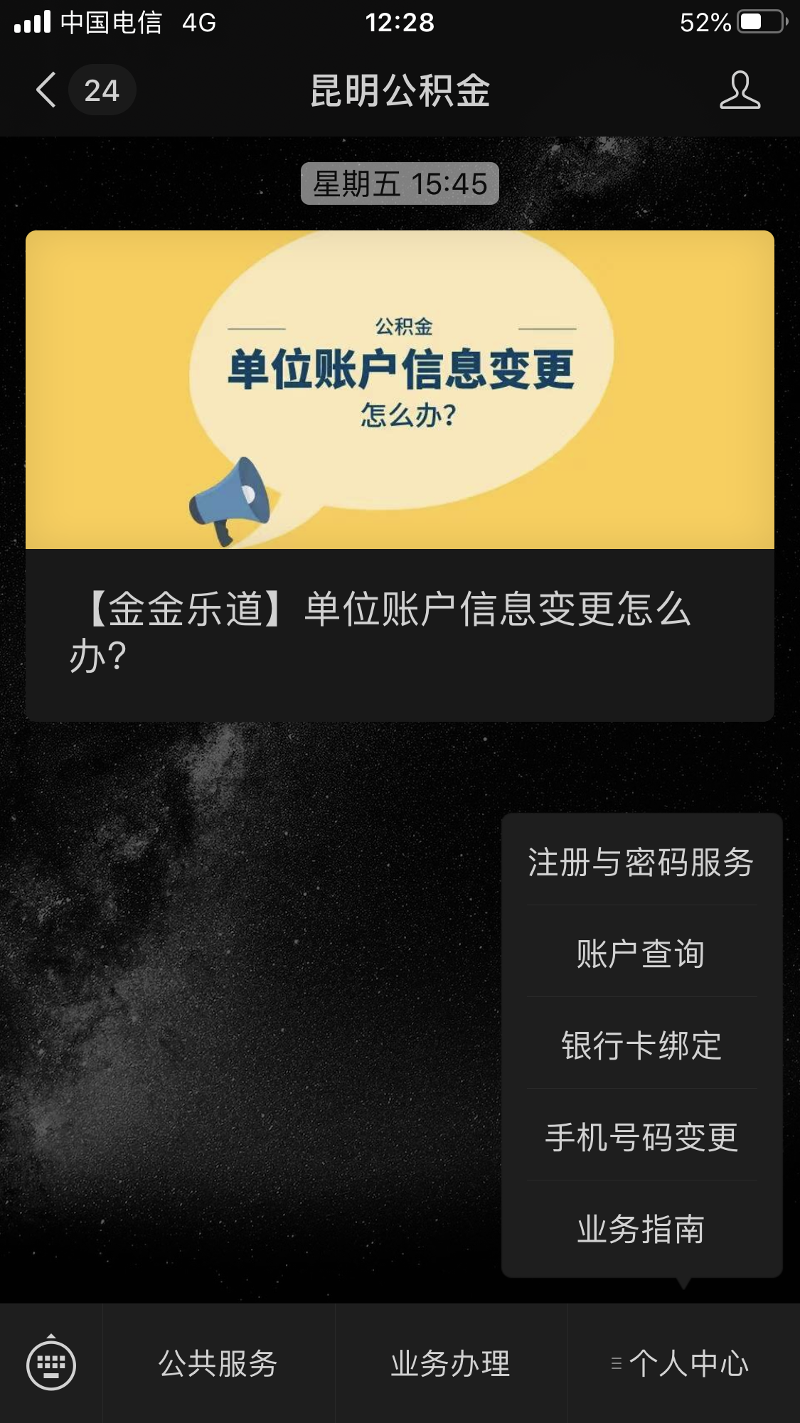 我和我爱人的手机都是一个型号,从7月初开始发现昆明公积金公众号的二级菜单都无法打开,其它公众号正常,换其它人的手机都没问题,不知怎么样解决