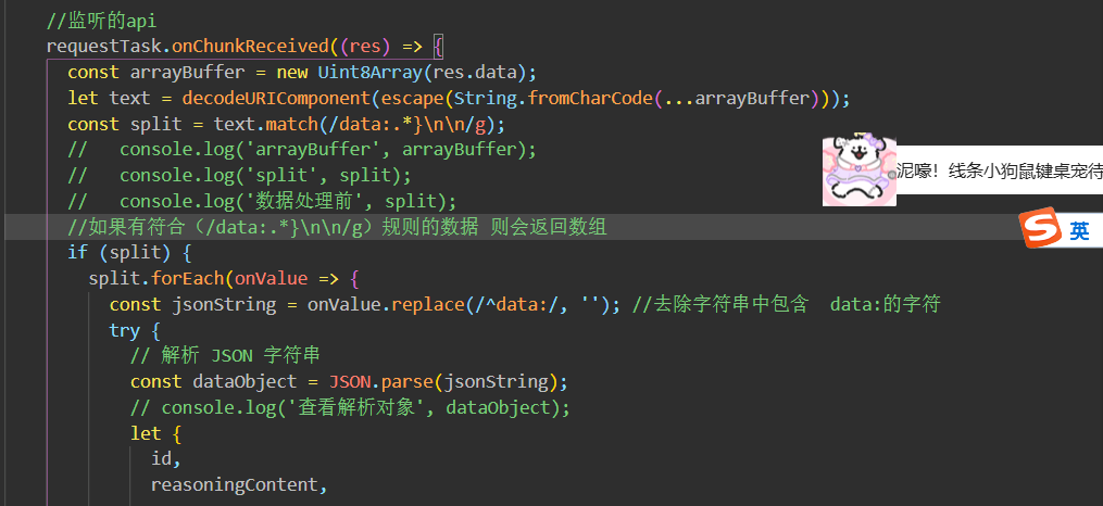 大致原因是因为wx.request有超时时间,默认的是60000(一分钟) , 而加了enableChunked :true 后 ,就是流式返回的,文本一旦一长,超过一分钟后就会出现超时,就会导致请求终止中断,