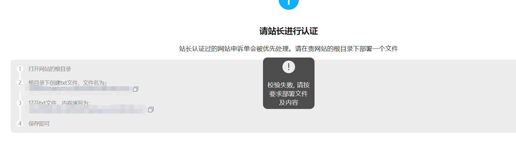 文件名,文件内容,根目录是否都配置对了? 是否不熟成功最简单的验证方法是,你是否可以直接在浏览器上打开这个文件(https://xxxxx.com/asdfasf.txt 根域名+校验文件名)。