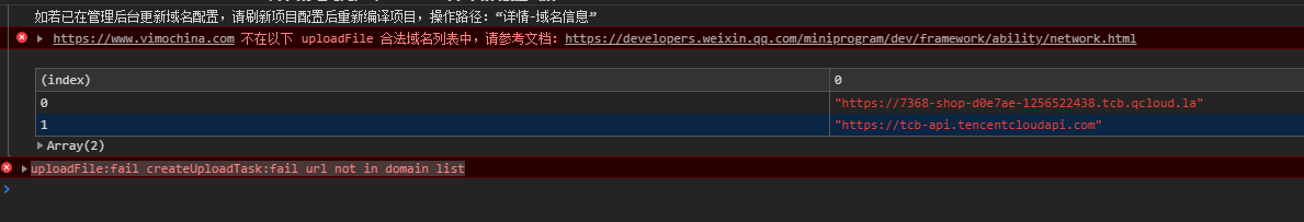 但是正式上线前必须 在小程序后台,把www.vimochina.com加到request合法域名中