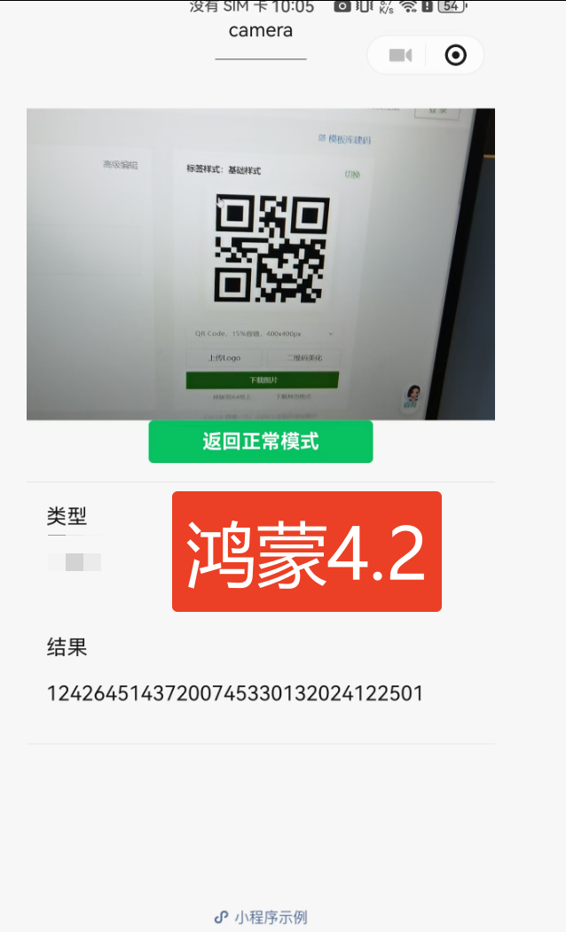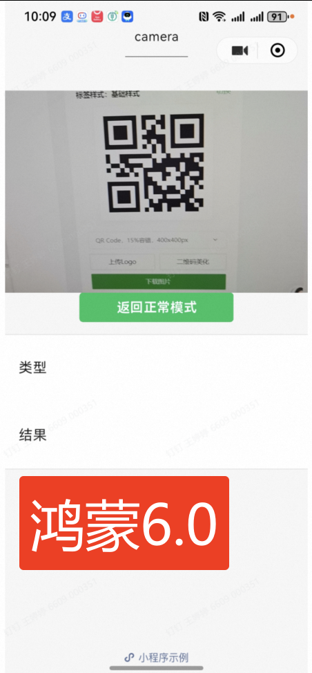 鸿蒙6.0打开小程序官方组件展示的camera组件,选择扫描一维码功能后无法扫描二维码。使用鸿蒙其他版本可以正常扫描。