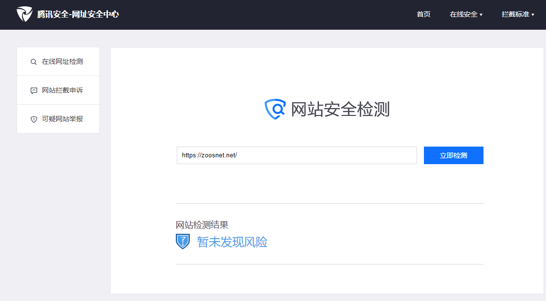 您好,微信内访问网站https://zoosnet.net/出现“无法确认该网页的安全性,请谨慎访问”的拦截提示,腾讯安全网址安全中心检测网页没有不安全的内容,请求解除在微信内的访问拦截提示或者提供下具体哪些内容违规,我们继续做整改,谢谢。