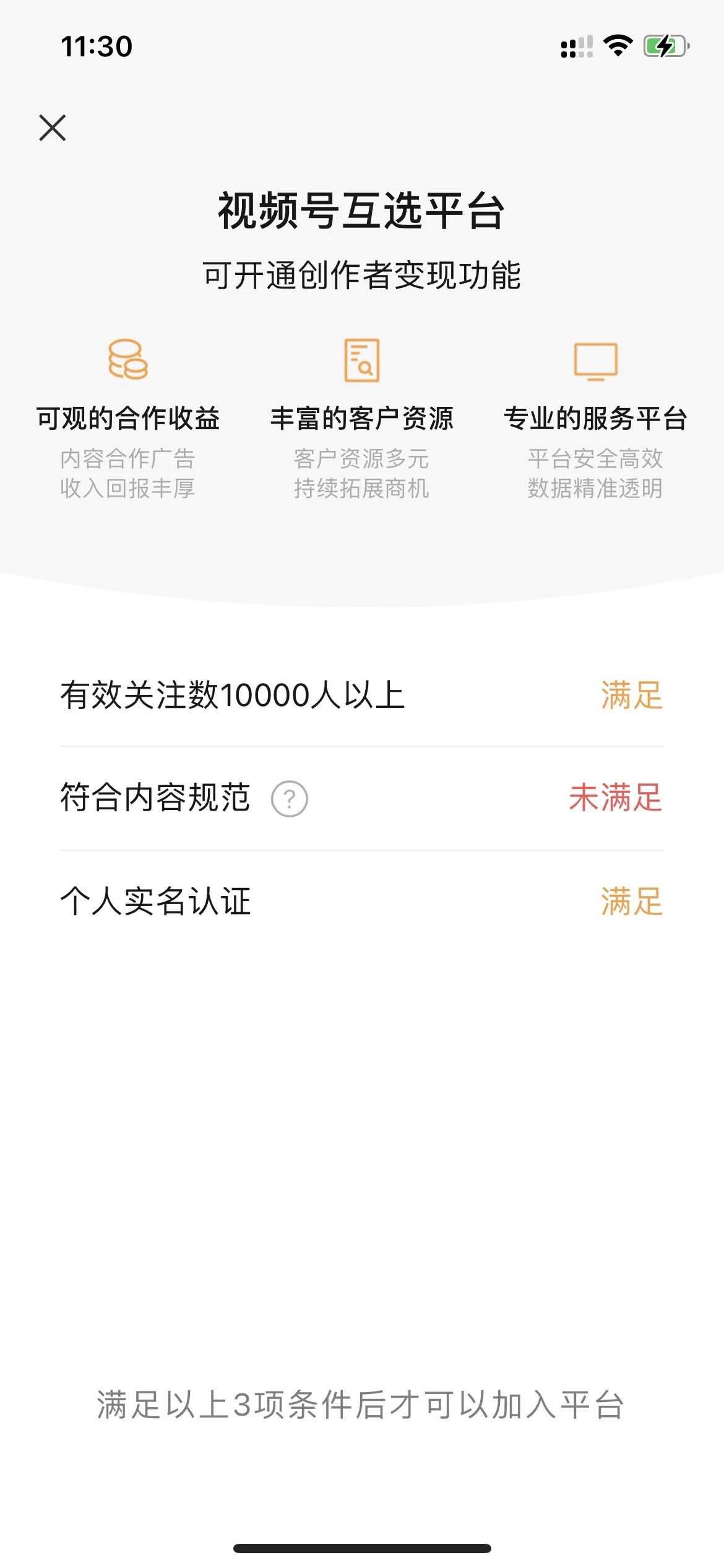 视频号发布作品没有原创声明,加入互选平台提示“符合内容规范” 视频号已完成个人兴趣认证且没有违规
