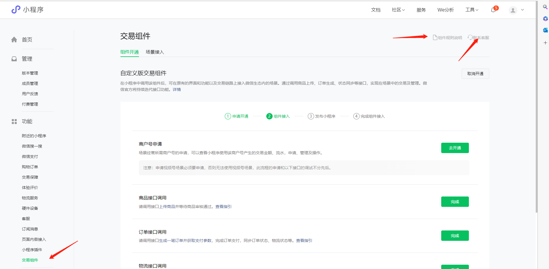 组件的建议咨询下相关组件客服看下吧 打开https://mp.weixin.qq.com/小程序管理后台-交易组件-联系客服