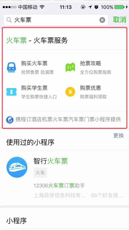 搜索小程序,输入 “火车票” 关键字,返回列表如下图,想知道红框部分的功能是怎么实现的,品牌推广么还是?