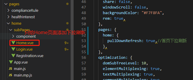 现在情况是Home 和Login 和Registeion页面都可以下拉刷新