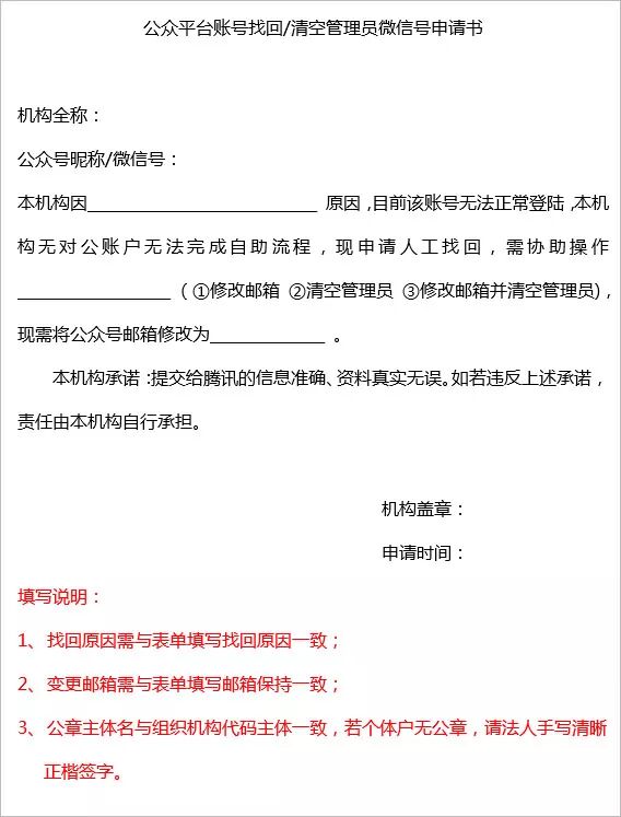 5、申请找回帐号的书面说明(需填写申请原因、及加盖主体公章):