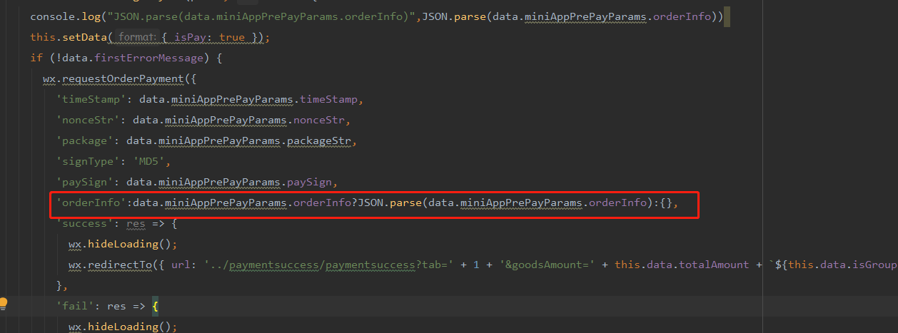 2、使用wx.requestOrderPayment替换wx.requestPayment,并增加orderInfo的字段
