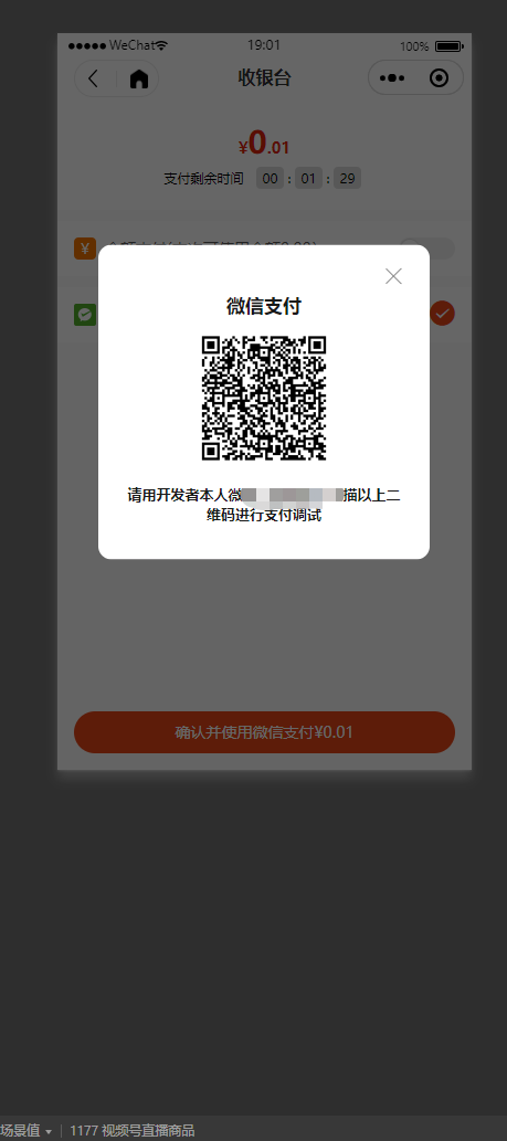 根据自定义交易组件的指引,使用开发者工具模拟视频号直播,做如下步骤: