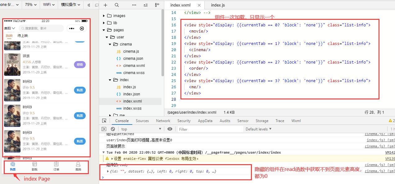 一个index Page页面中四个组件,是一次性加载的,根据不同的tabBar显示不同的组件,